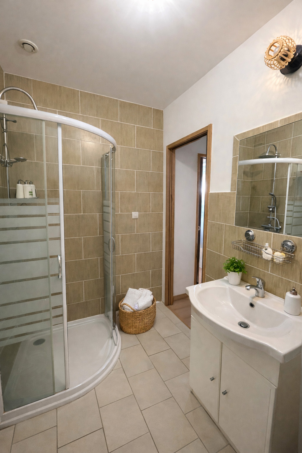 Salle d’eau : douche, WC et sèche-cheveux.