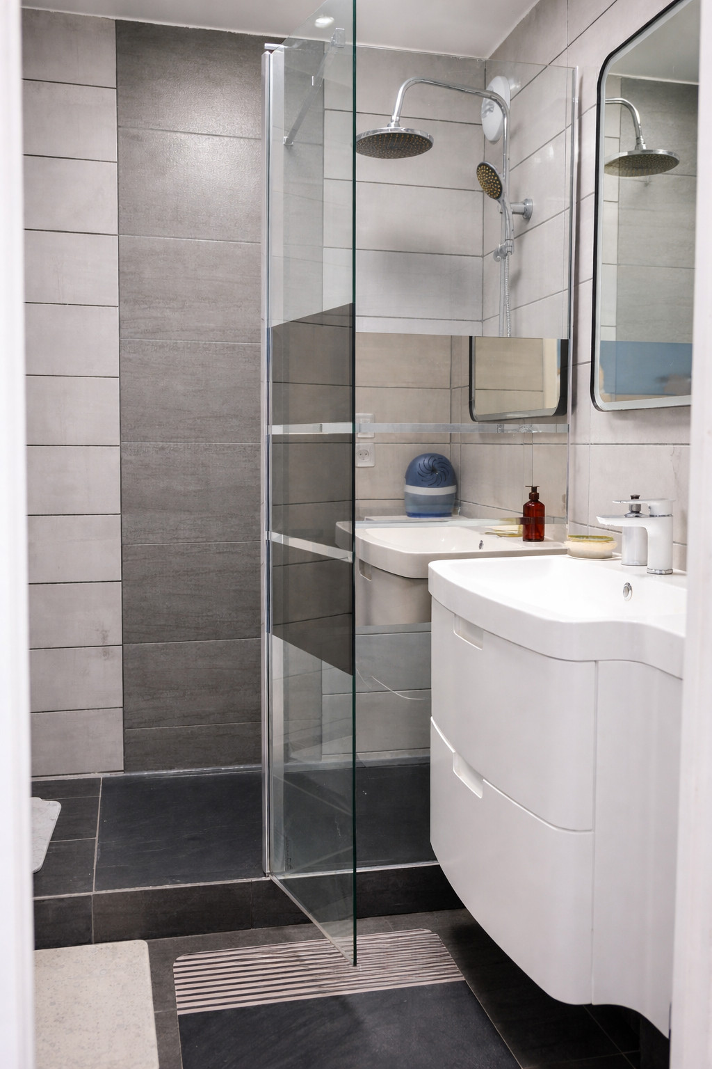 1 salle de bain avec douche, pratique et fonctionnelle