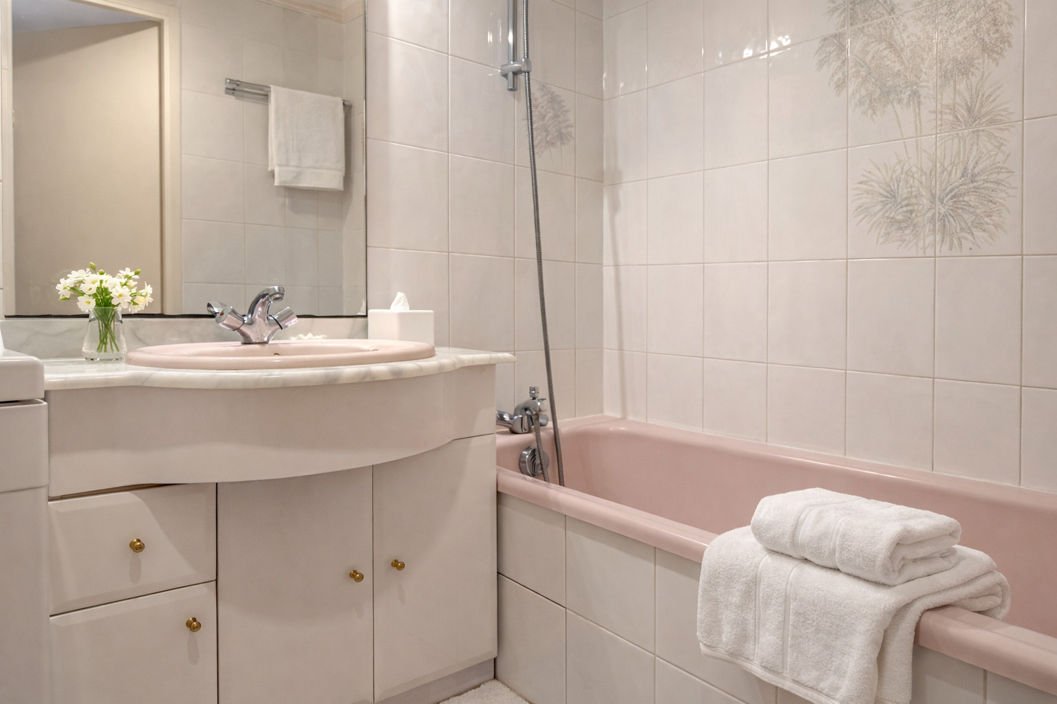 • Salle de bains : baignoire et meuble vasque.