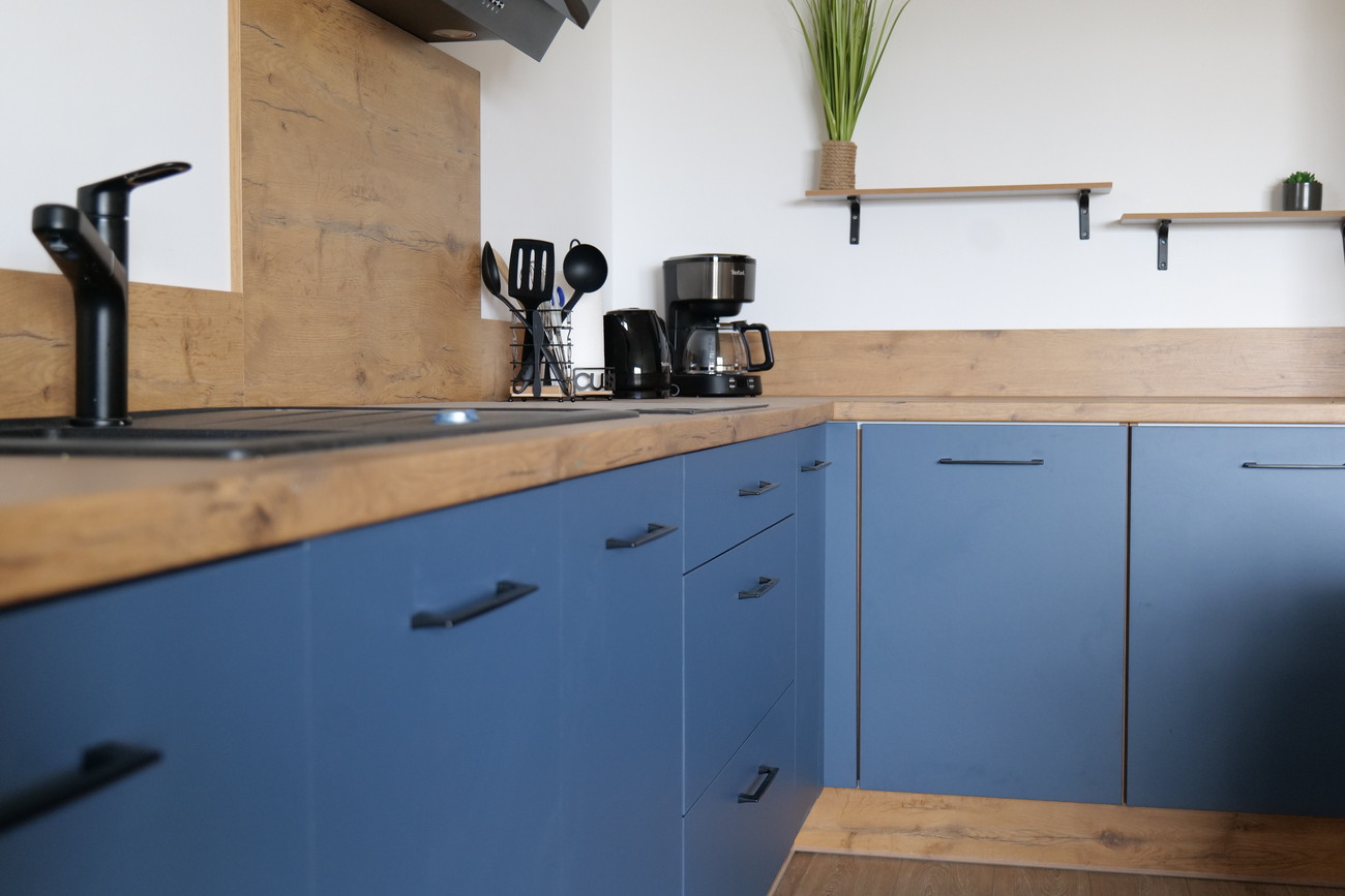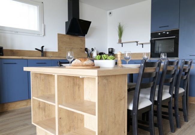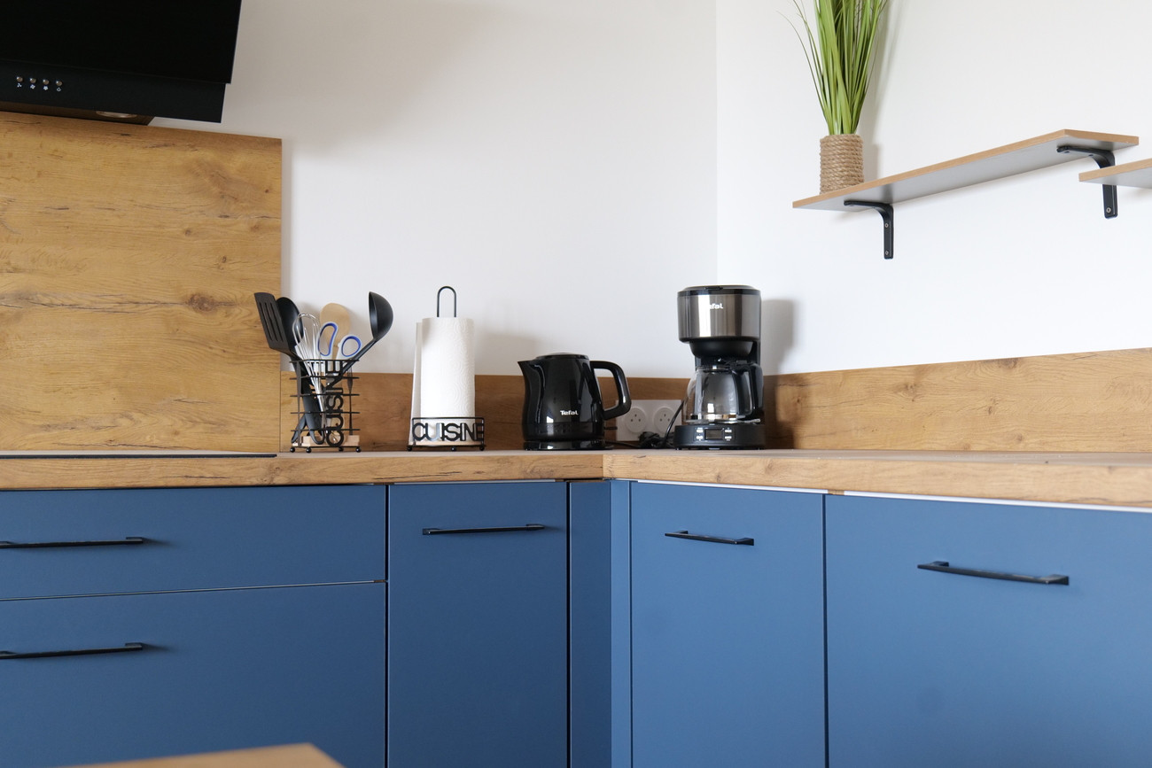 • Cuisine entièrement équipée : réfrigérateur, micro-ondes, four, lave-vaisselle, grille-pain, bouilloire, machine à café filtre