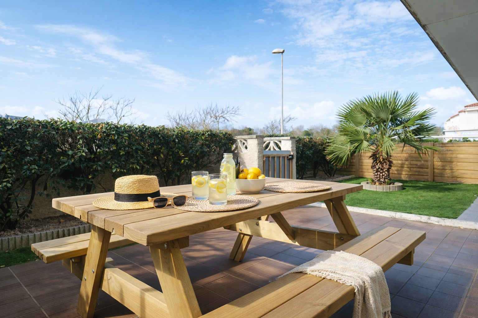 Vous pourrez vous détendre sur les transats, ou partager un repas en plein air grâce au salon de jardin et à la plancha électrique mis à votre disposition.