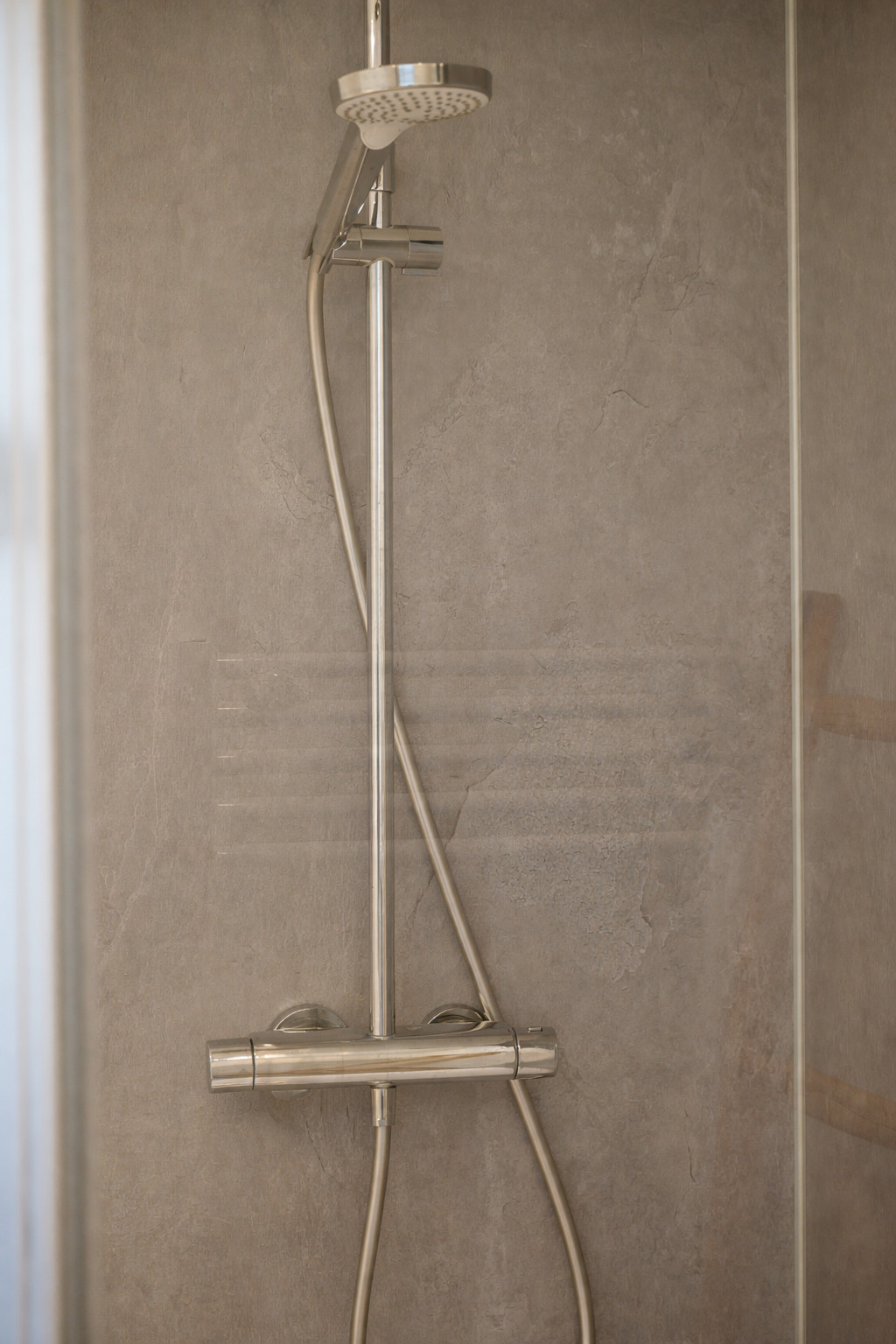 • Salle d’eau avec douche, vasque, sèche-cheveux, machine à laver et WC.