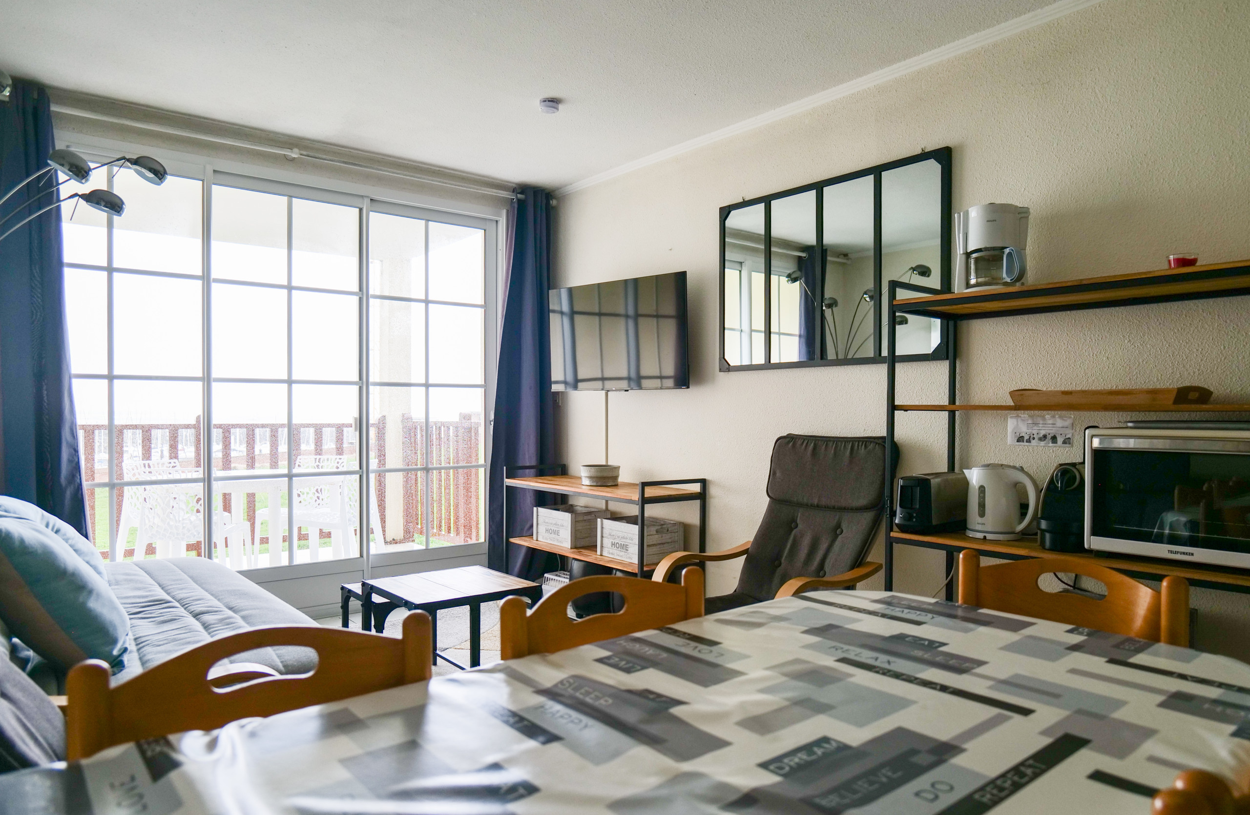 Appartement situé au 1er étage d'une résidence au cœur du golf de Port Bourgenay, en pleine nature et à deux pas de la plage. Idéal pour des vacances reposantes en famille ou entre amis, avec accès aux équipements du village vacances : golf, tennis, commerces et piscine commune chauffée (1er juin – 15 septembre, bracelets fournis).