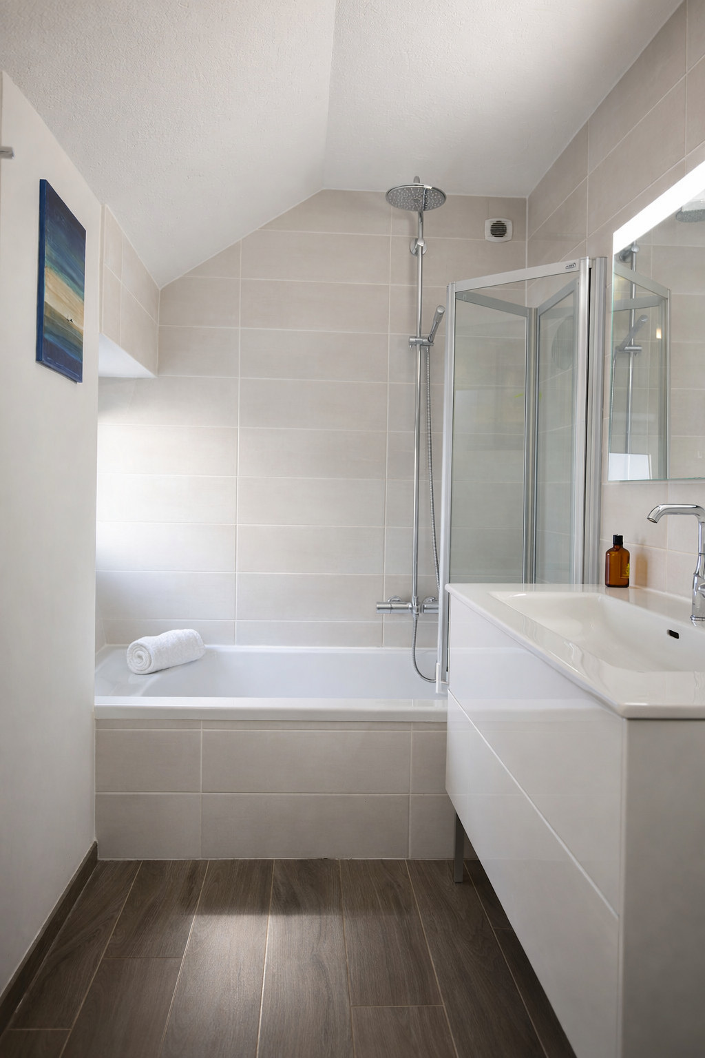 - Suite parentale avec lit double (160 cm), salle de bain avec douche à l’italienne et dressing.