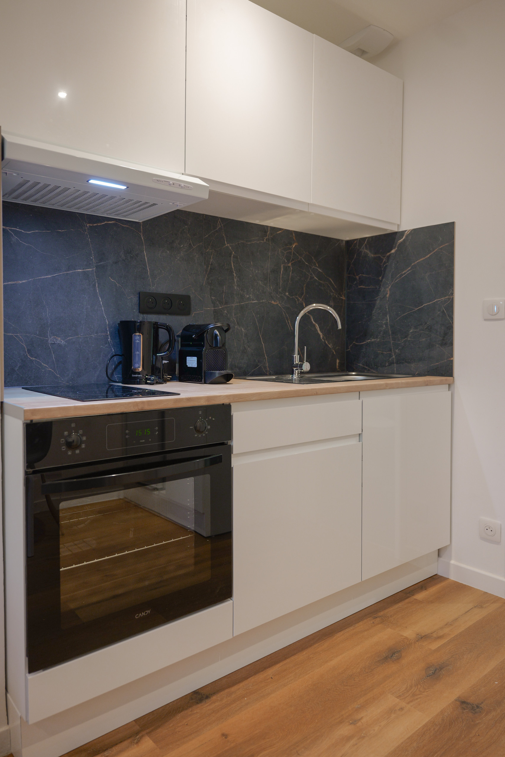 •Kitchenette équipée : plaques de cuisson, micro-ondes, réfrigérateur et cafetière ( SENSEO).