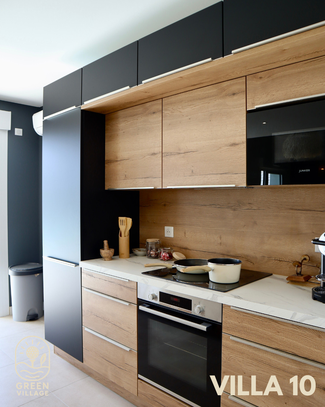 Grand espace de vie ouvert avec une cuisine entièrement équipée et une décoration soignée, conçue pour des instants de convivialité inoubliables. Climatisation réversible dans le salon / cuisine.